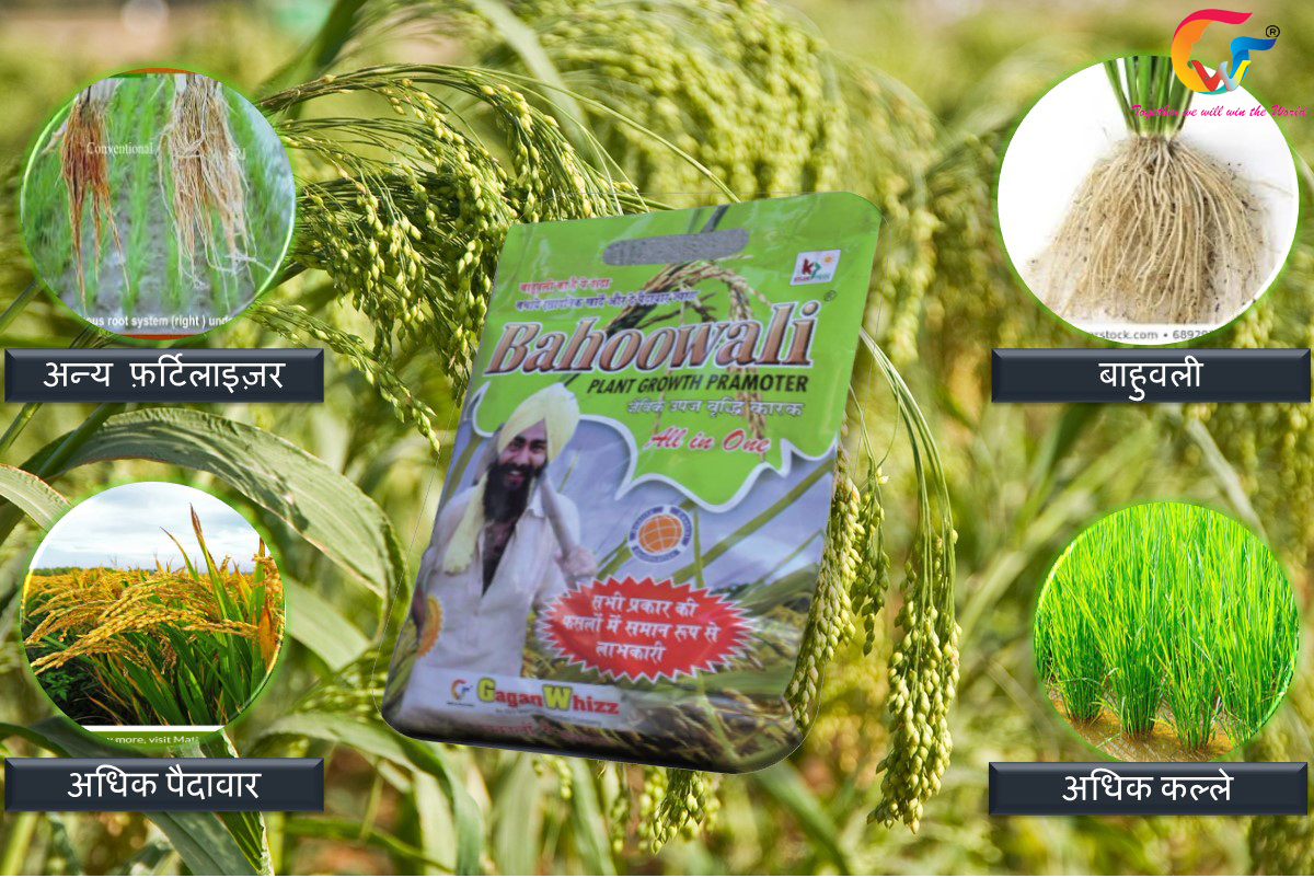 बाहुवली एक जैविक उपज बृद्धि कारक है जिसका प्रयोग सब्जियों एवं धान, गेहू एवं गन्ने की फसलों मे वृद्धि एवं चमक हेतु प्रयोग किया जाता है यह जमीन में नाइट्रोजन का प्रमाण बढ़ता है, ज्यादा समय तक नमी को बरकरार रखता है यह जड़ और फसल को बेहतर बनता है और पौधों को प्राक्रतिक प्रकोप में भी टिके रहने में सहायता करता है शाखाओं एवं जड़ो को विकसित करता है कोशिकाओं की सख्यां में वृद्धि करके फसल के आकार को बढ़ाता है पौधों को अधिक सुदृढ़ बनाता है जमीन में उपलब्ध अनेक पोषक तत्वों को ग्रहण करने में सहायता करता है जिससे पैदावार में वृद्धि होती है |